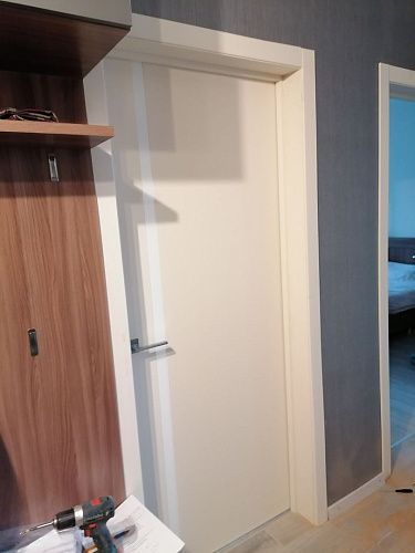 Кроме того производится врезка под скрытые петли. Такая опция помогает избежать лишних пыльных работ на адресе и сокращает время работы на монтаже. По возможности врезки в конкретную модель уточняйте у менеджеров.